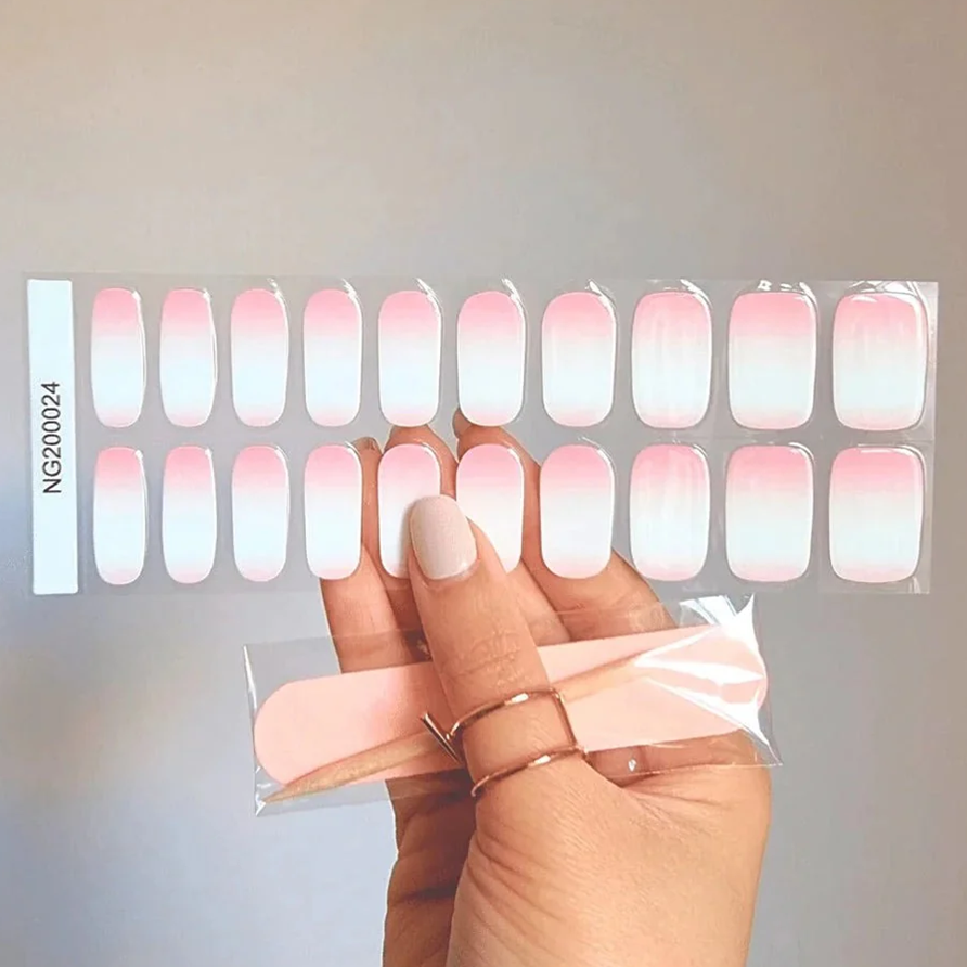 Our semi-cured gel nail stickers are made from real liquid gel and are 60% pre-cured. These flexible, self-adhesive strips easily fit any nail shape or size. Once applied, simply cure them under a UV lamp for a flawless, fully hardened finish—just like a professional gel manicure!