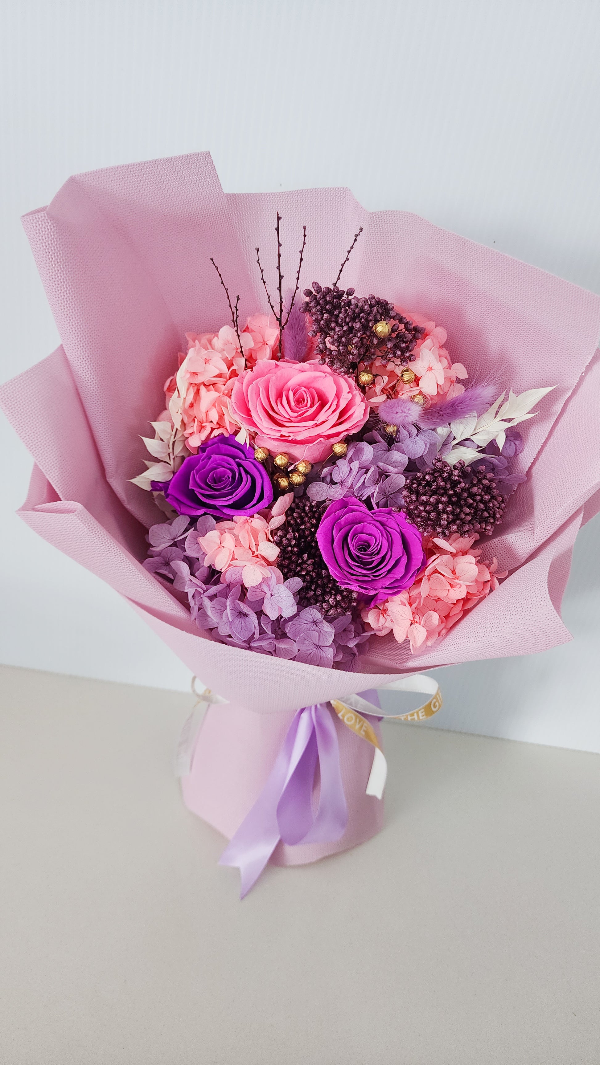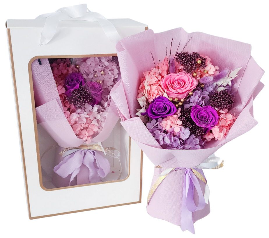 Delicately crafted and beautifully boxed, this preserved flower bouquet is a timeless gift that speaks volumes.
