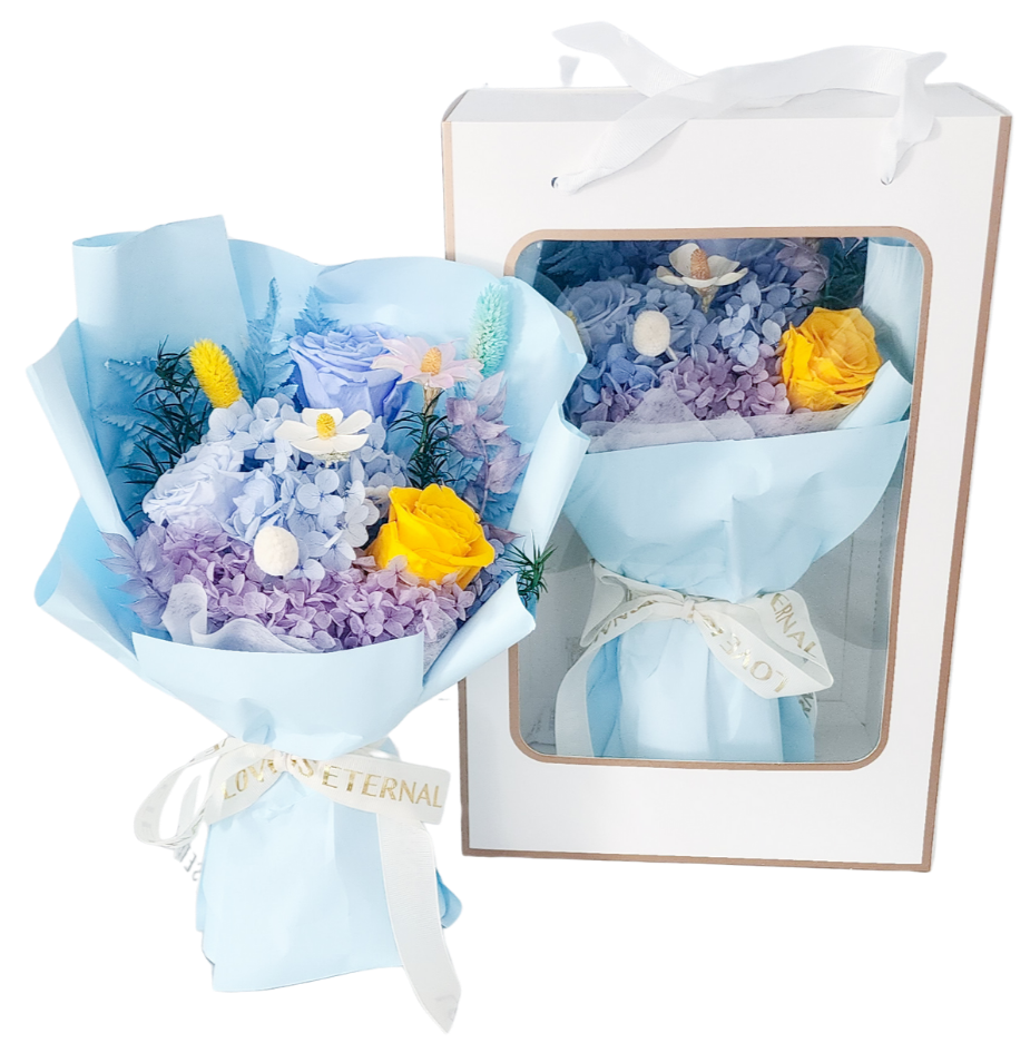 Delicately crafted and beautifully boxed, this preserved flower bouquet is a timeless gift that speaks volumes.