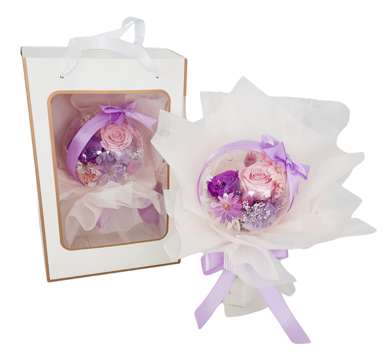 Delicately crafted and beautifully boxed, this preserved flower bouquet is a timeless gift that speaks volumes.